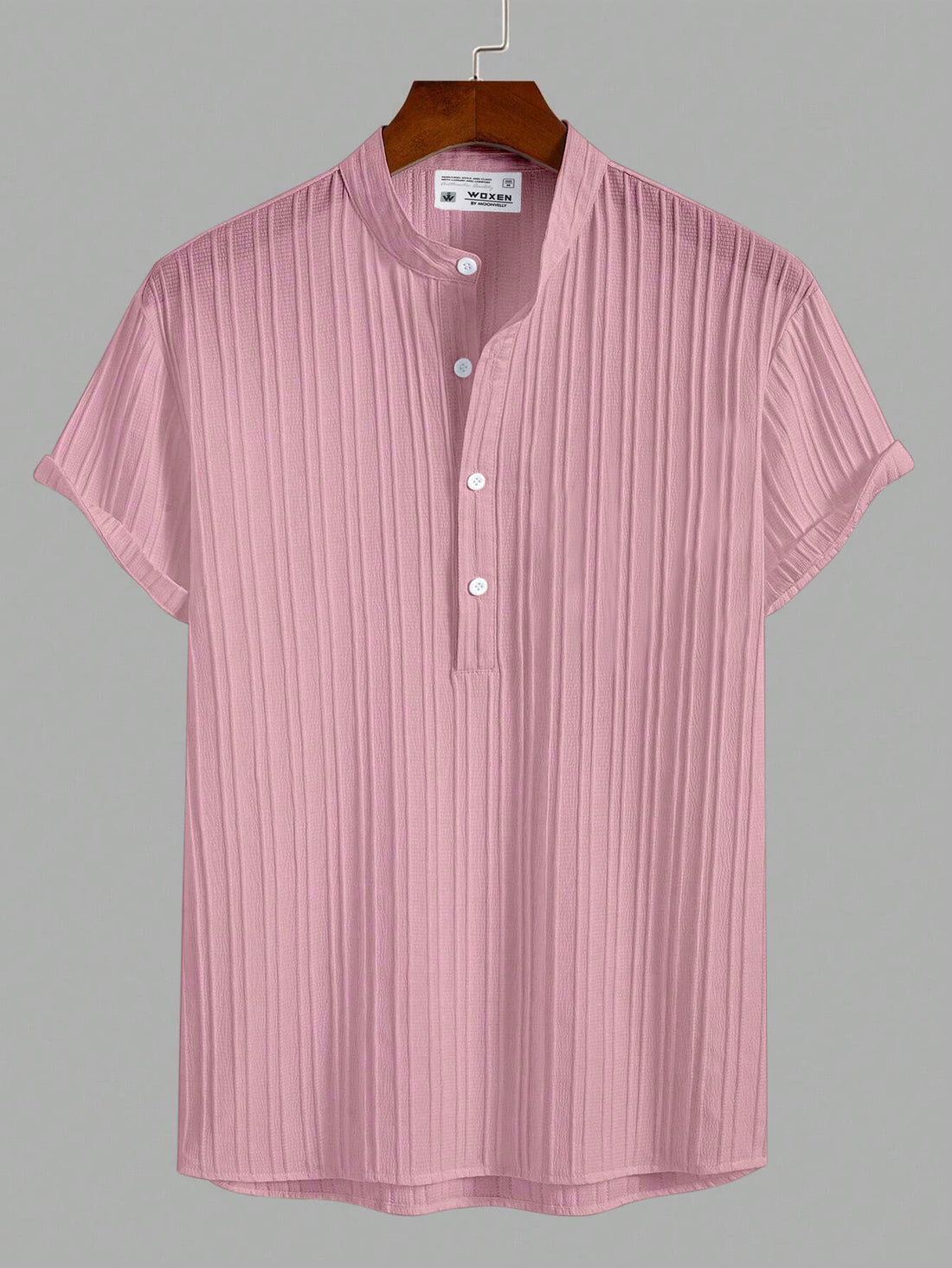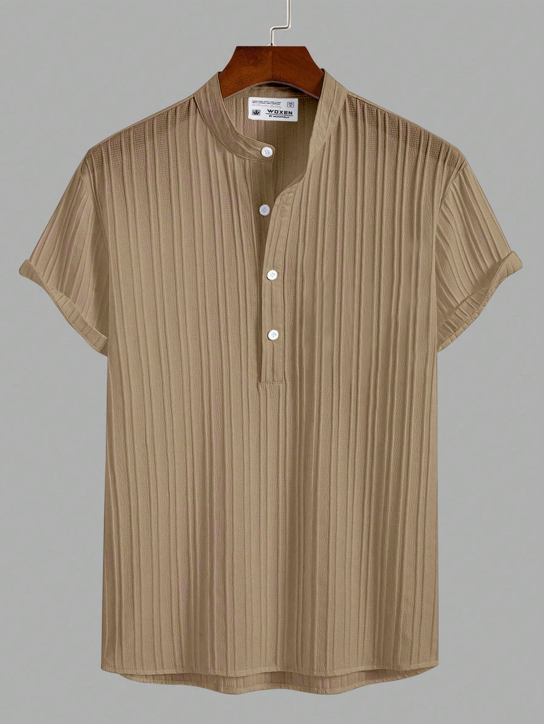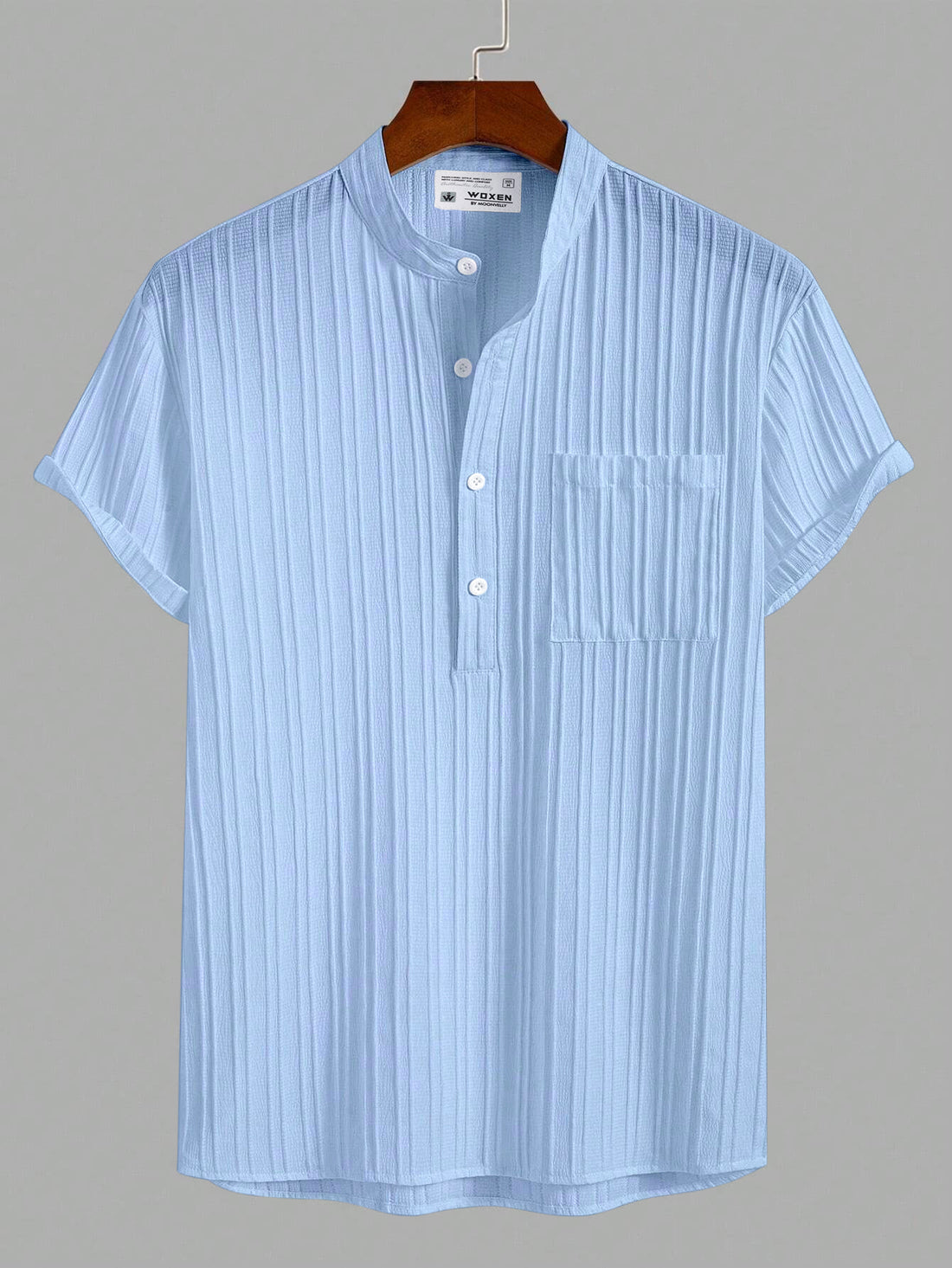Redefine classic style with this cotton blend band-collar shirt, crafted for comfort and a modern...