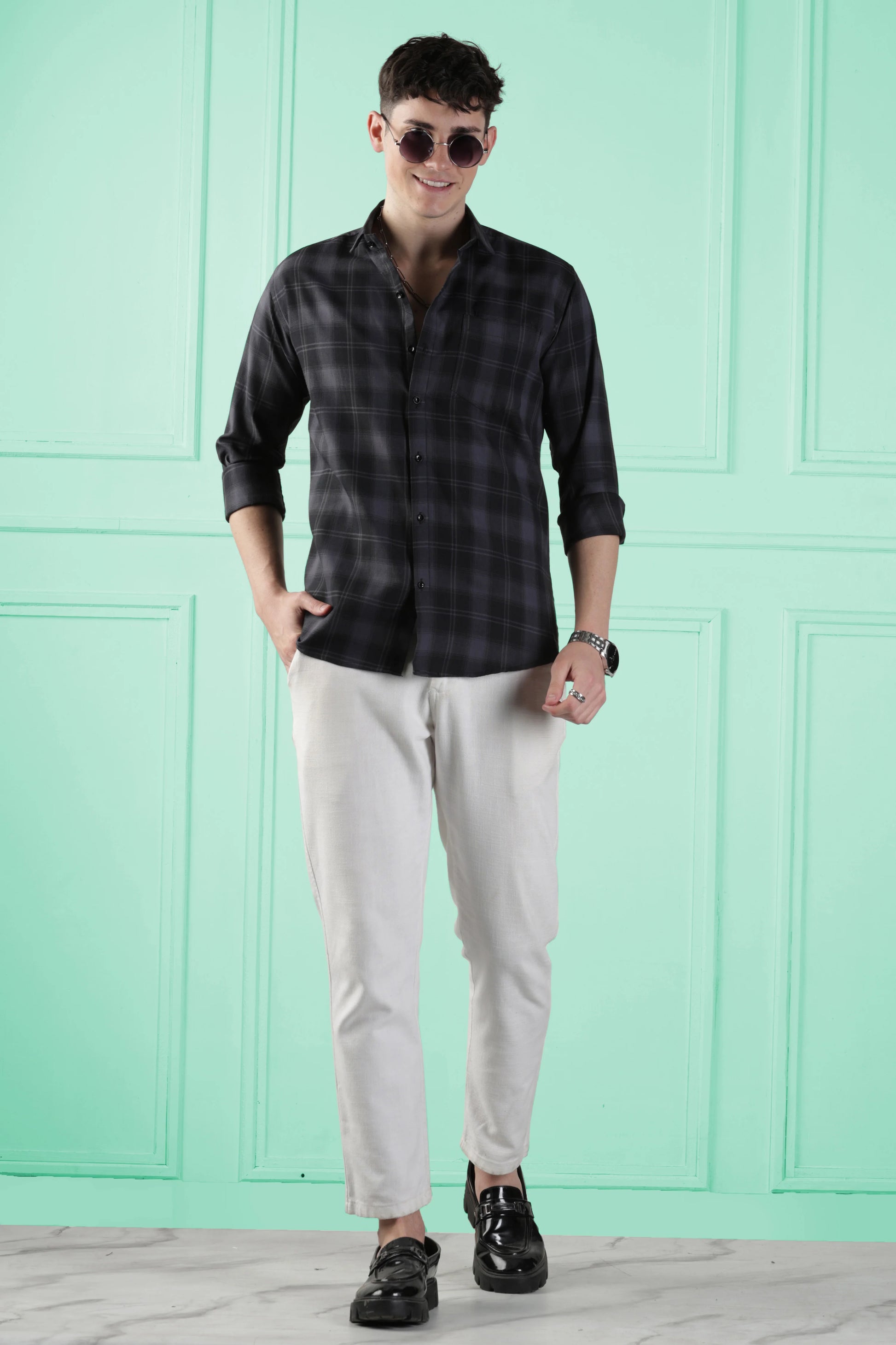 Elevate your wardrobe with the Classic Black Checkered Cotton Blend Shirt, designed for both comfort and style. Crafted from a blend of cotton, this shirt offers breathability and durability suitable for everyday wear. Its timeless checkered pattern adds a refined touch, making it versatile for casual or semi-formal occasions. The tailored fit ensures a sharp silhouette, while the soft fabric provides all-day comfort, perfect for professionals seeking both practicality and sophistication.