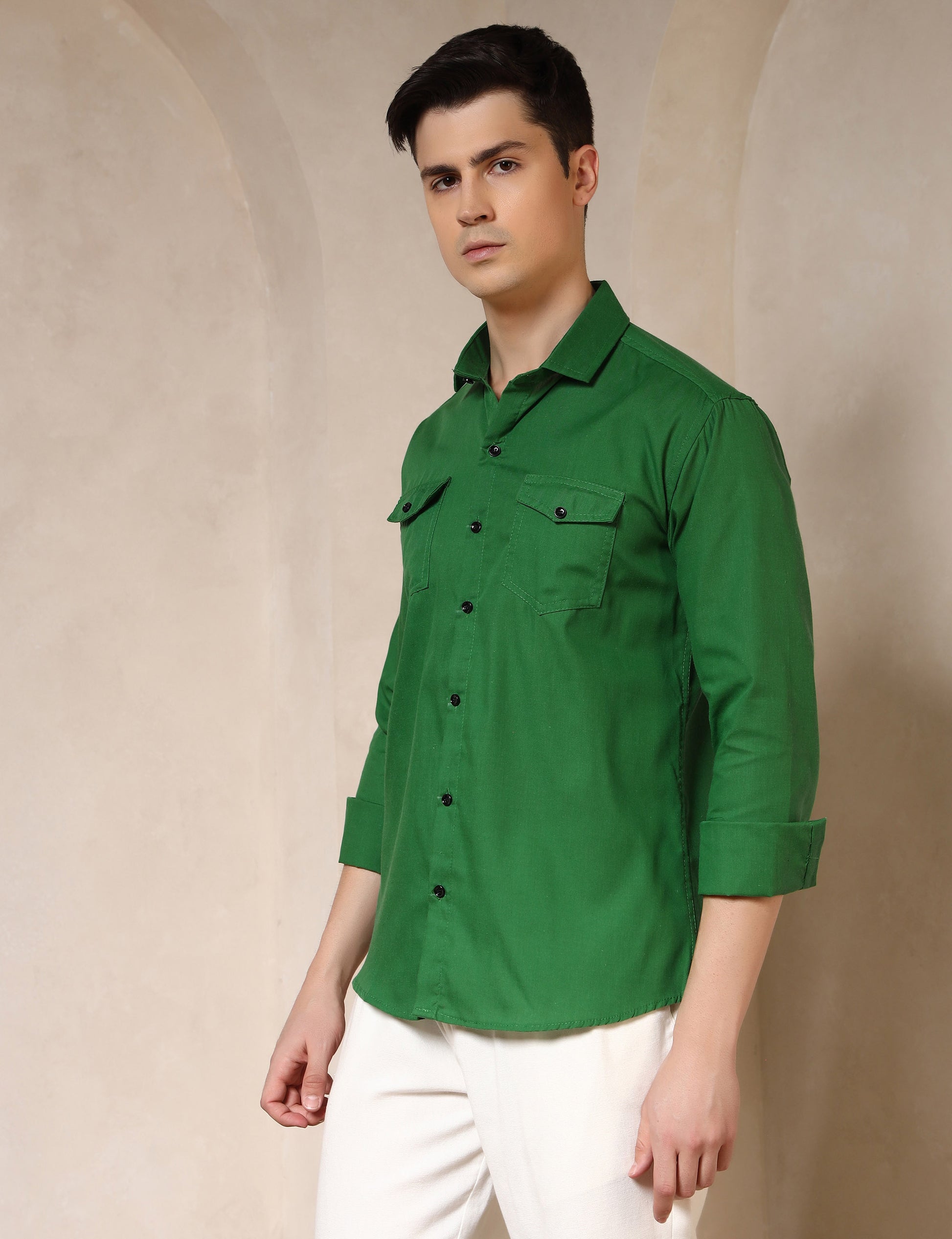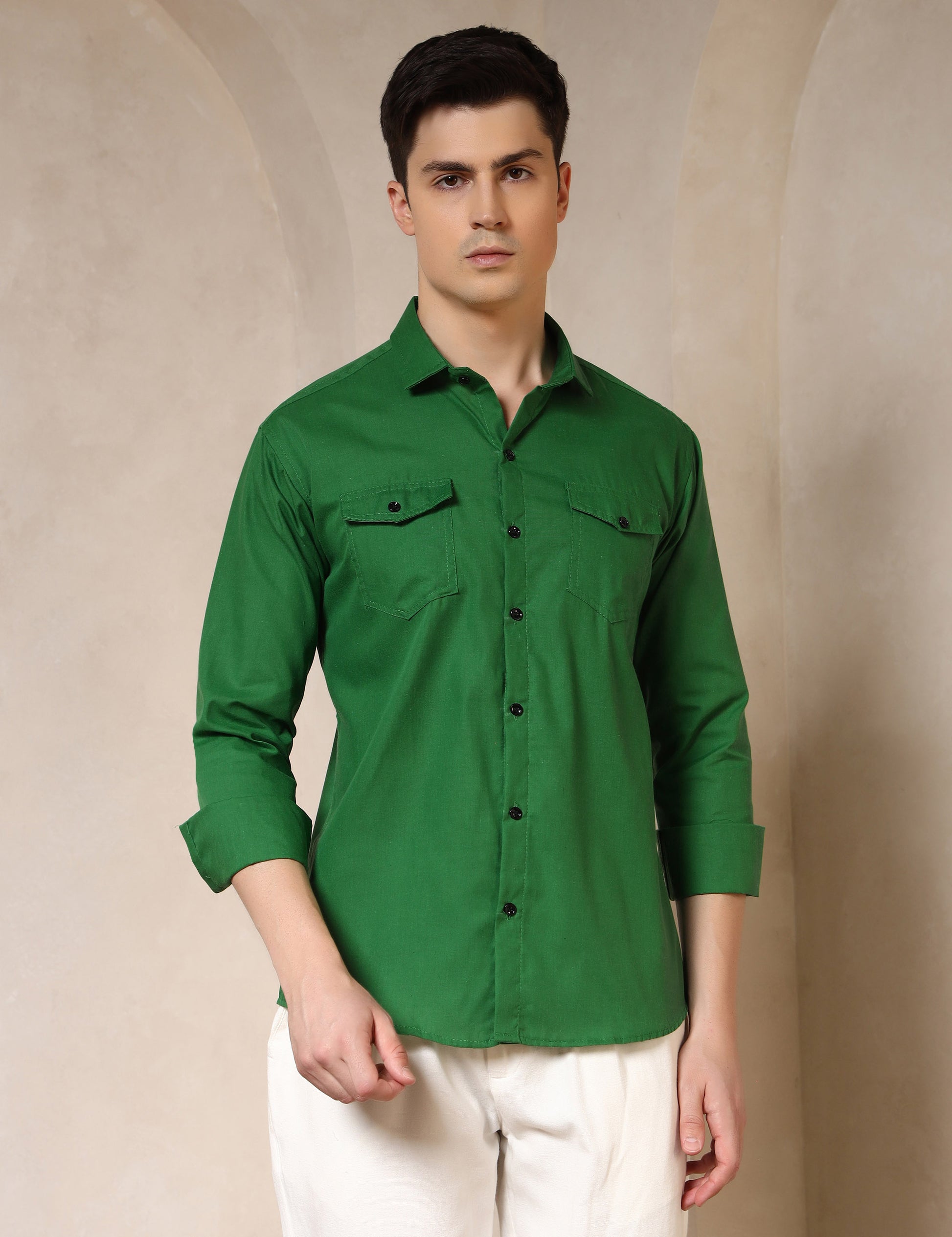Classic Bright Green Dual Pocket Cotton Blend Shirt