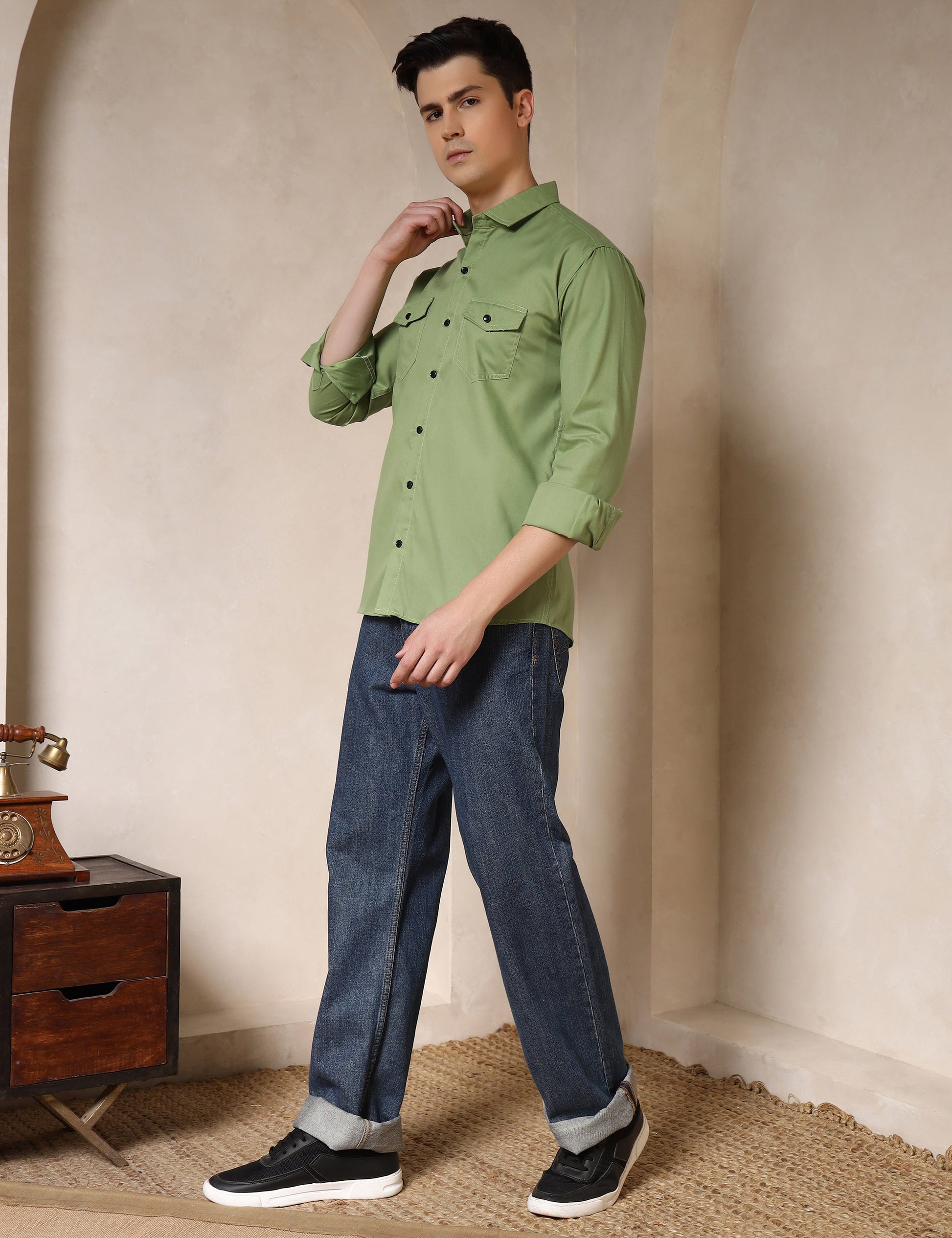 Classic Light Green Dual Pocket Cotton Blend Shirt