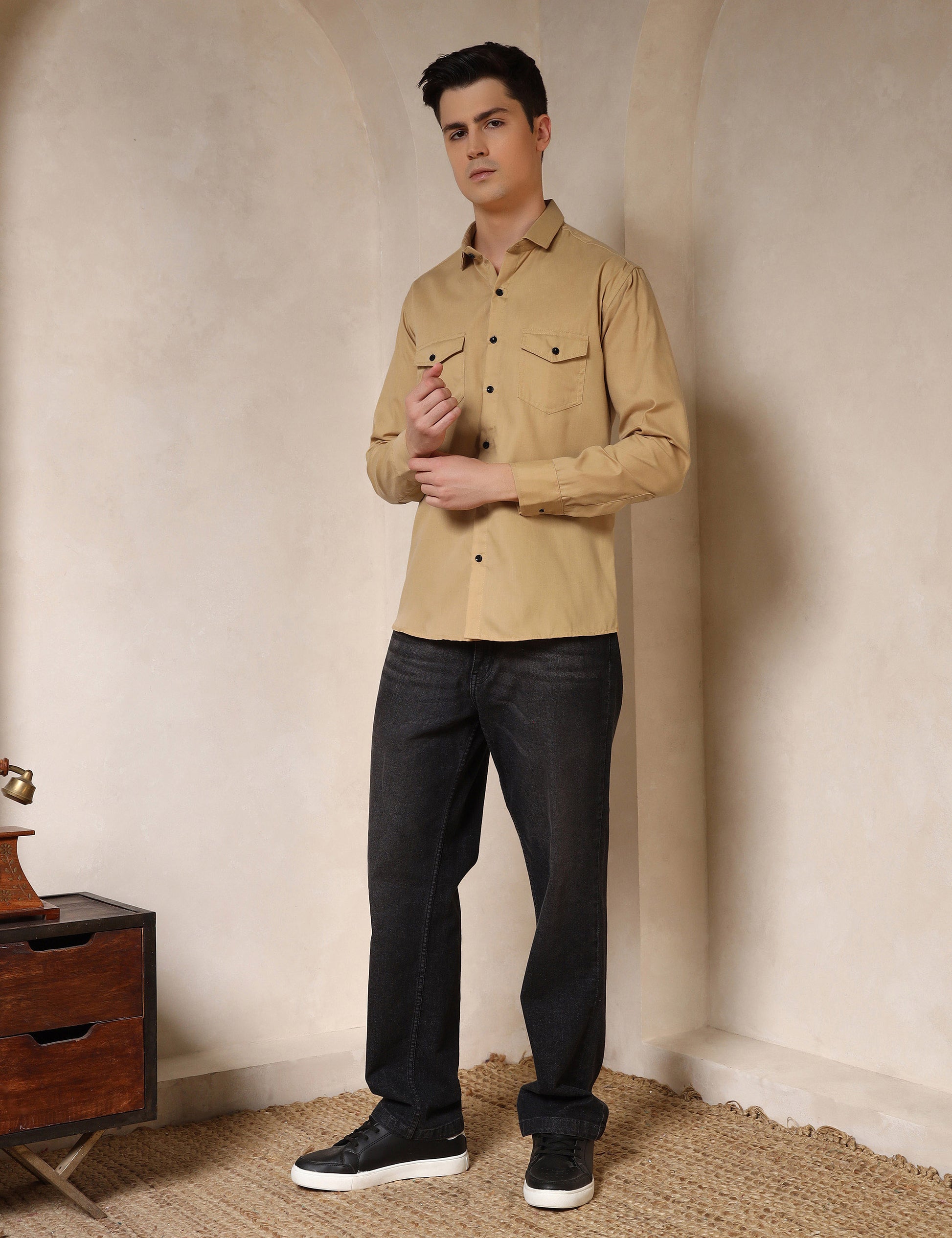 Classic Ochre Yellow Dual Pocket Cotton Blend Shirt