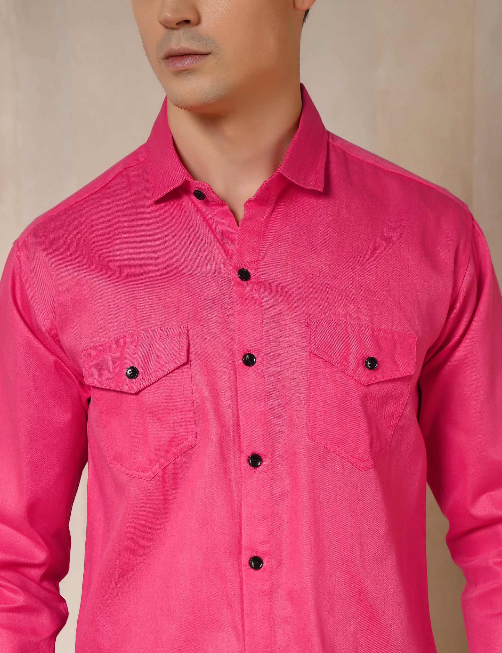 Classic Pink Dual Pocket Cotton Blend Shirt