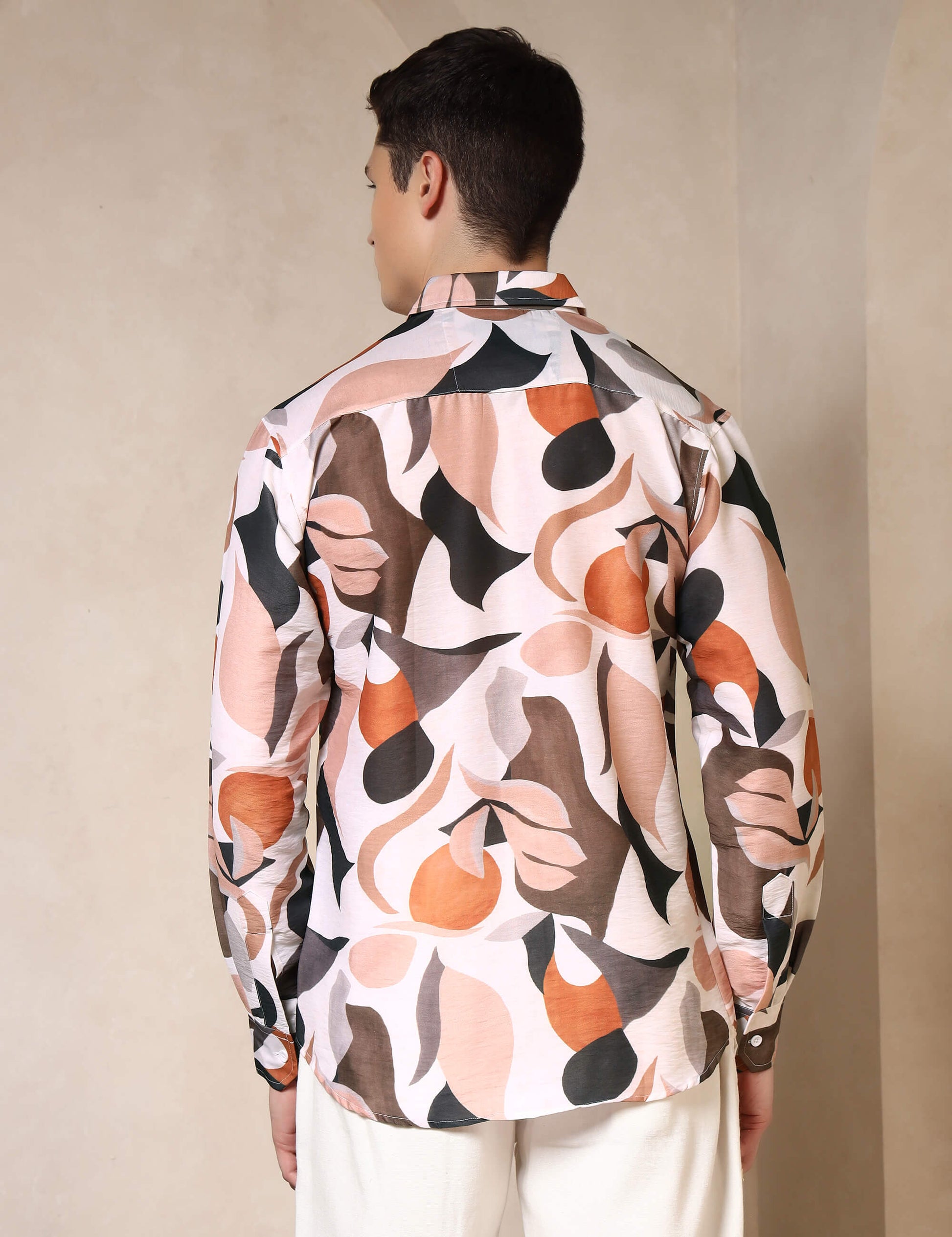 Add artistic charm to your wardrobe with this earth-tone abstract printed shirt, made from a soft and breathable cotton blend. Its fluid pattern and relaxed fit make it perfect for effortless everyday style or smart-casual outings.