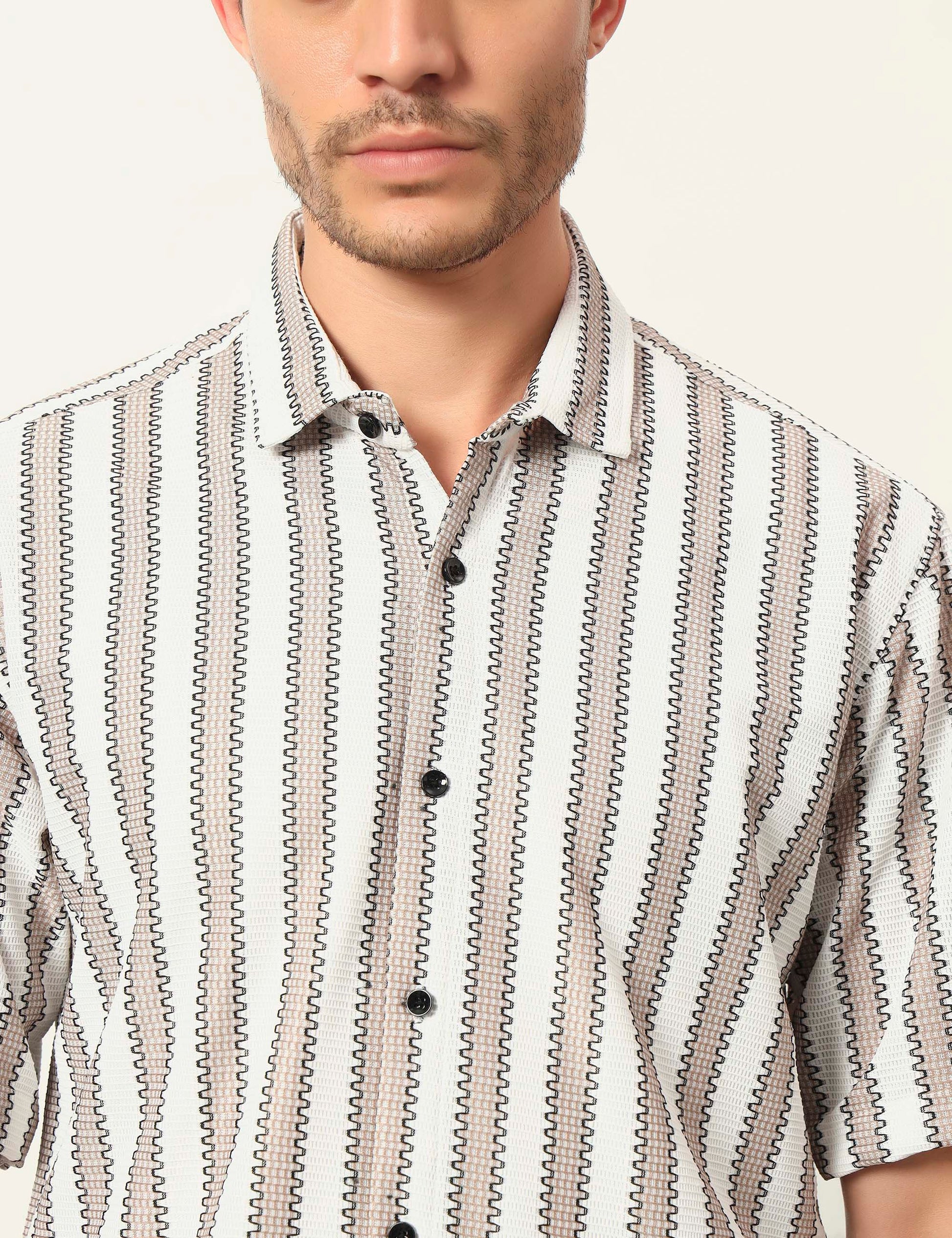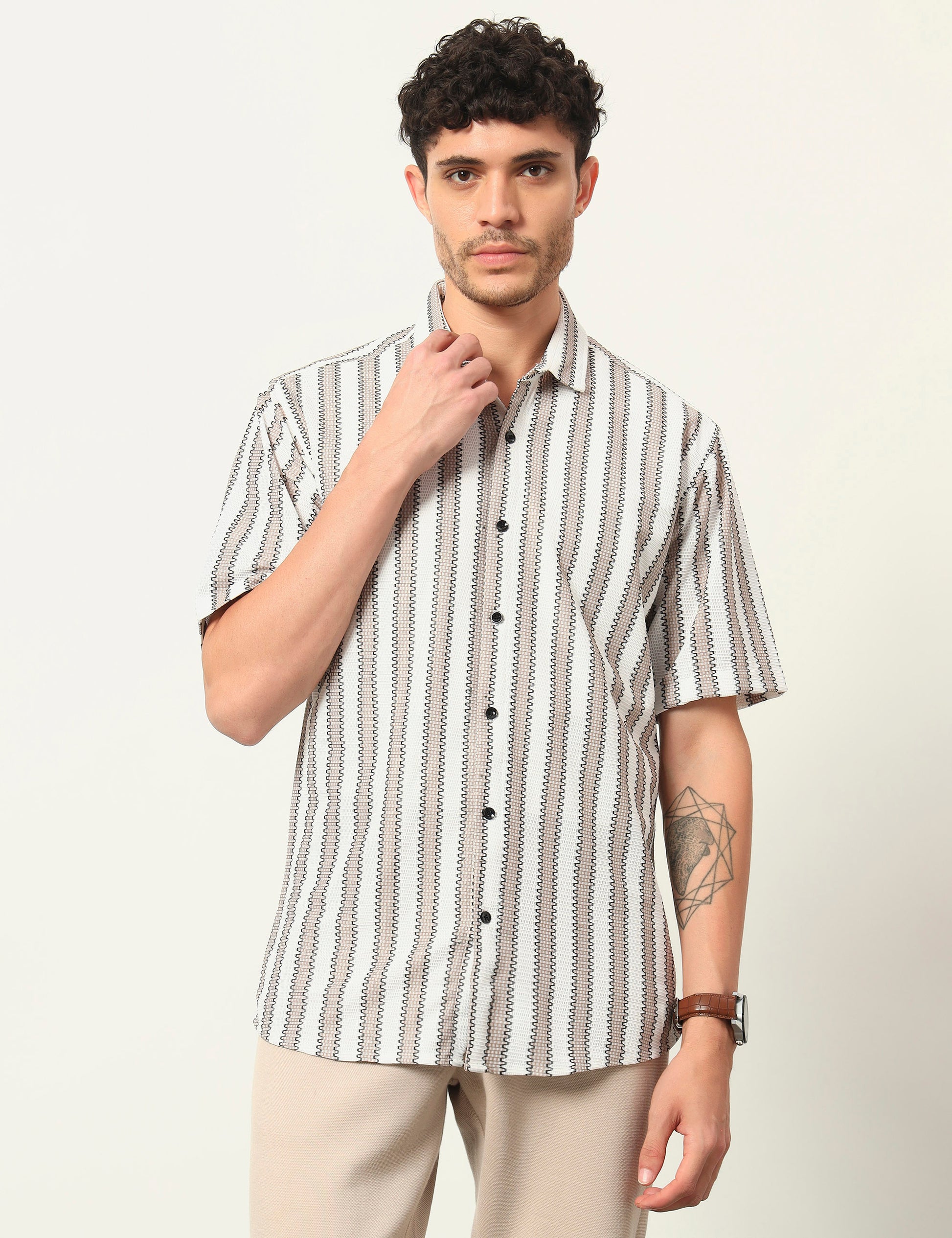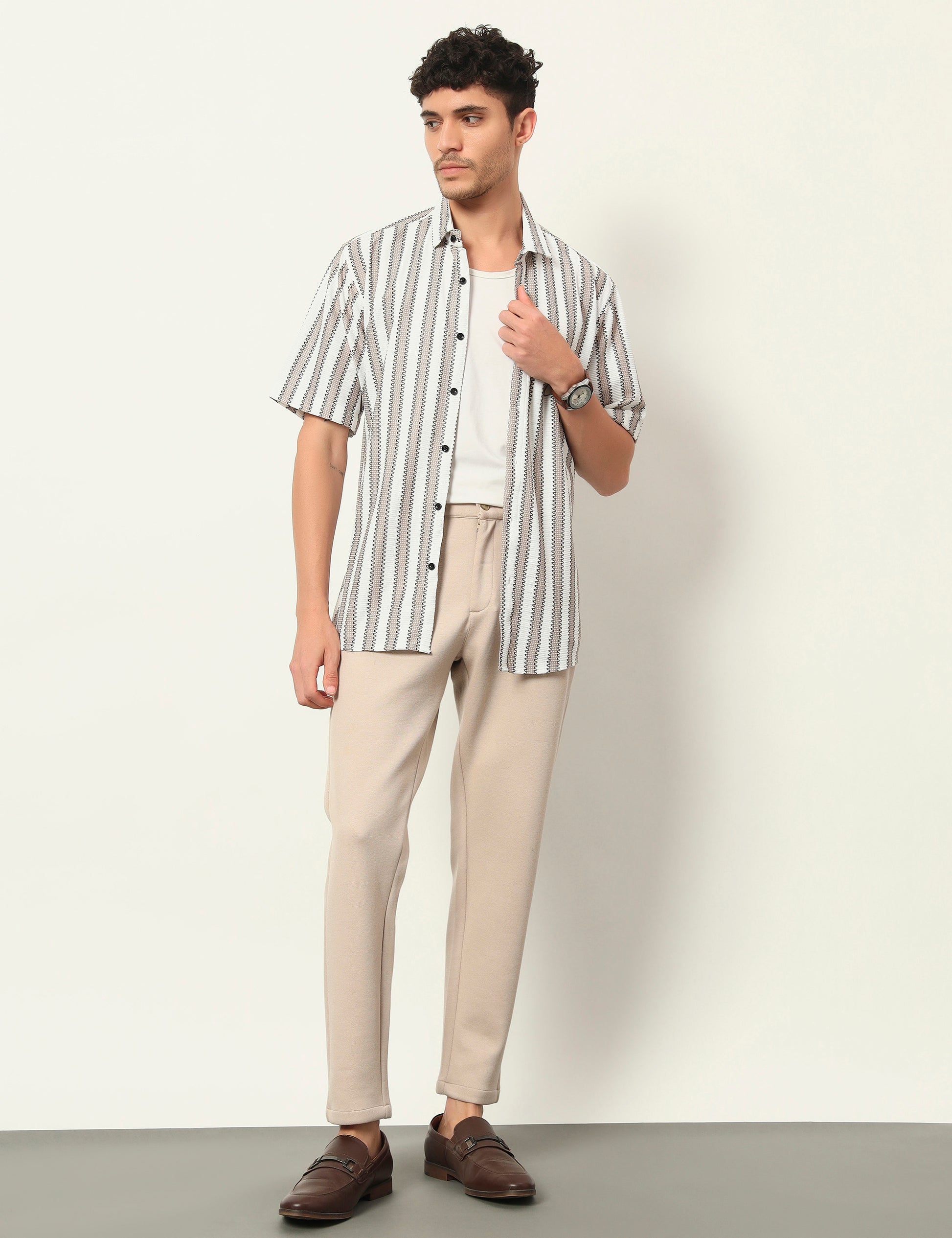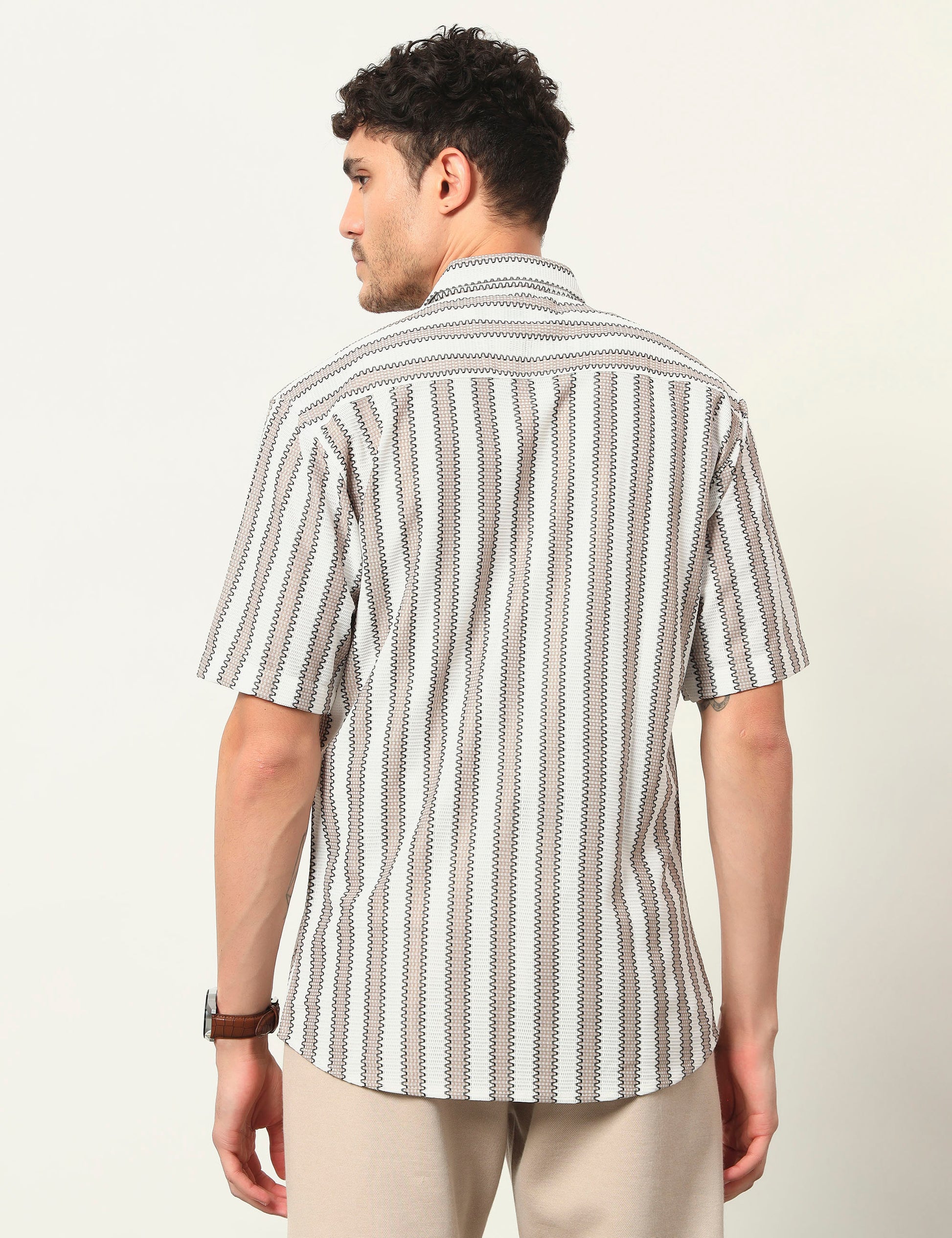 Fresh Flow Polyester Blend Beige Striped Shirt