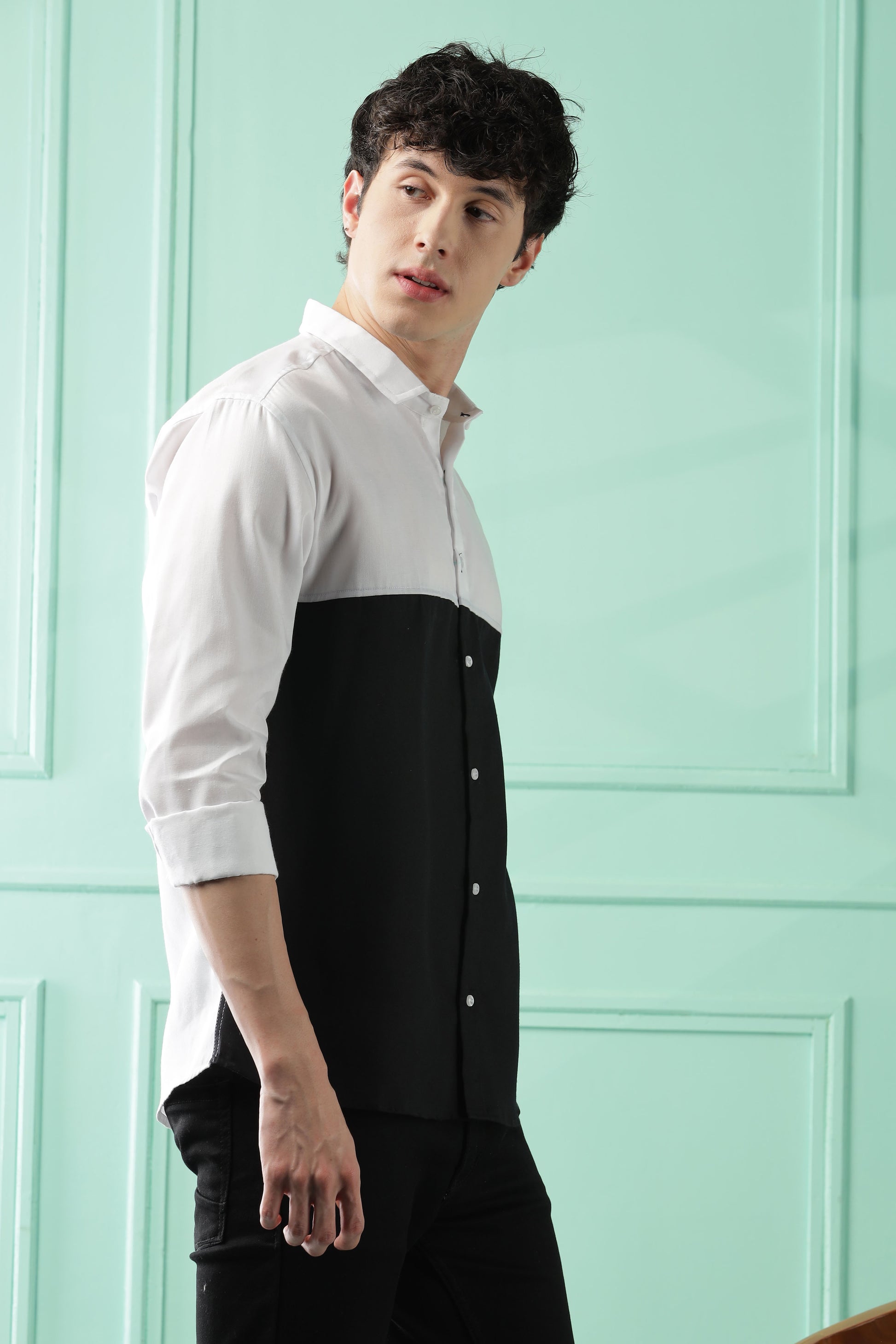 Stand out with this cotton blend color-block shirt, designed to bring a fresh and modern twist to your wardrobe. Featuring a dual-tone design, full sleeves, and a classic collared neckline, it blends comfort with contemporary style. Perfect for casual outings, evening gatherings, or weekend wear, this shirt is a stylish pick for any occasion.