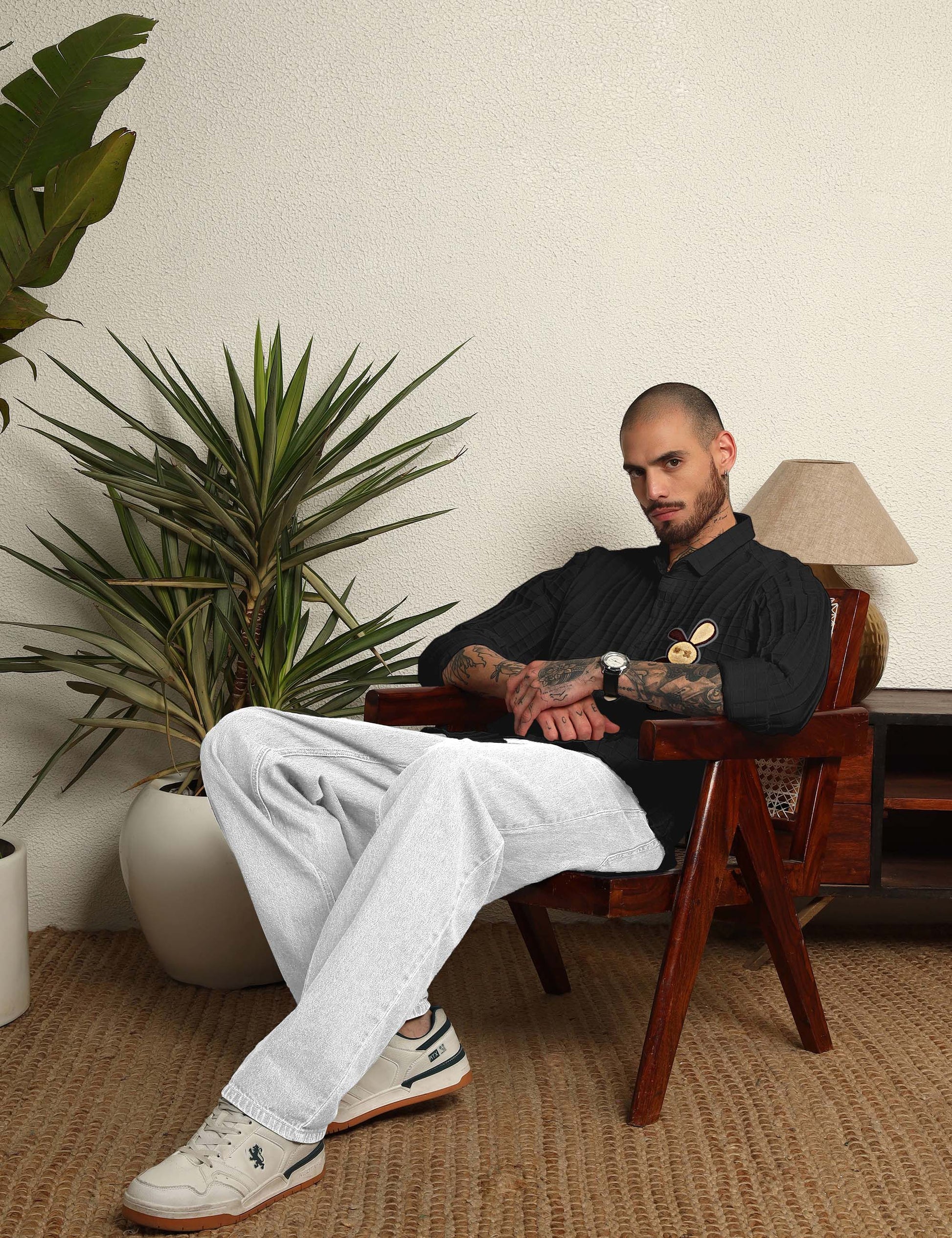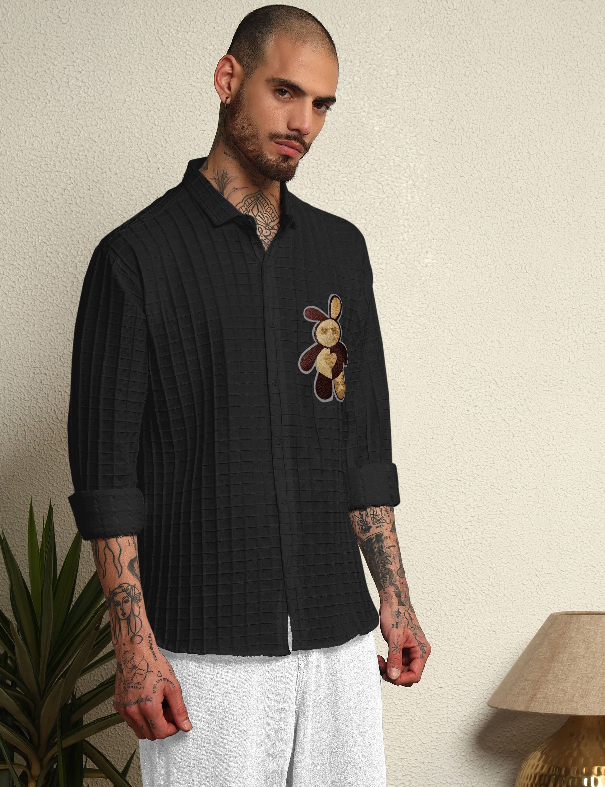 Show off your playful yet stylish side with this polycotton embroidered patch shirt. Designed with a unique textured fabric and a fun embroidered patch on the chest, this shirt blends comfort with standout style. Perfect for casual outings, parties, or streetwear looks, it adds a quirky twist to your wardrobe essentials.