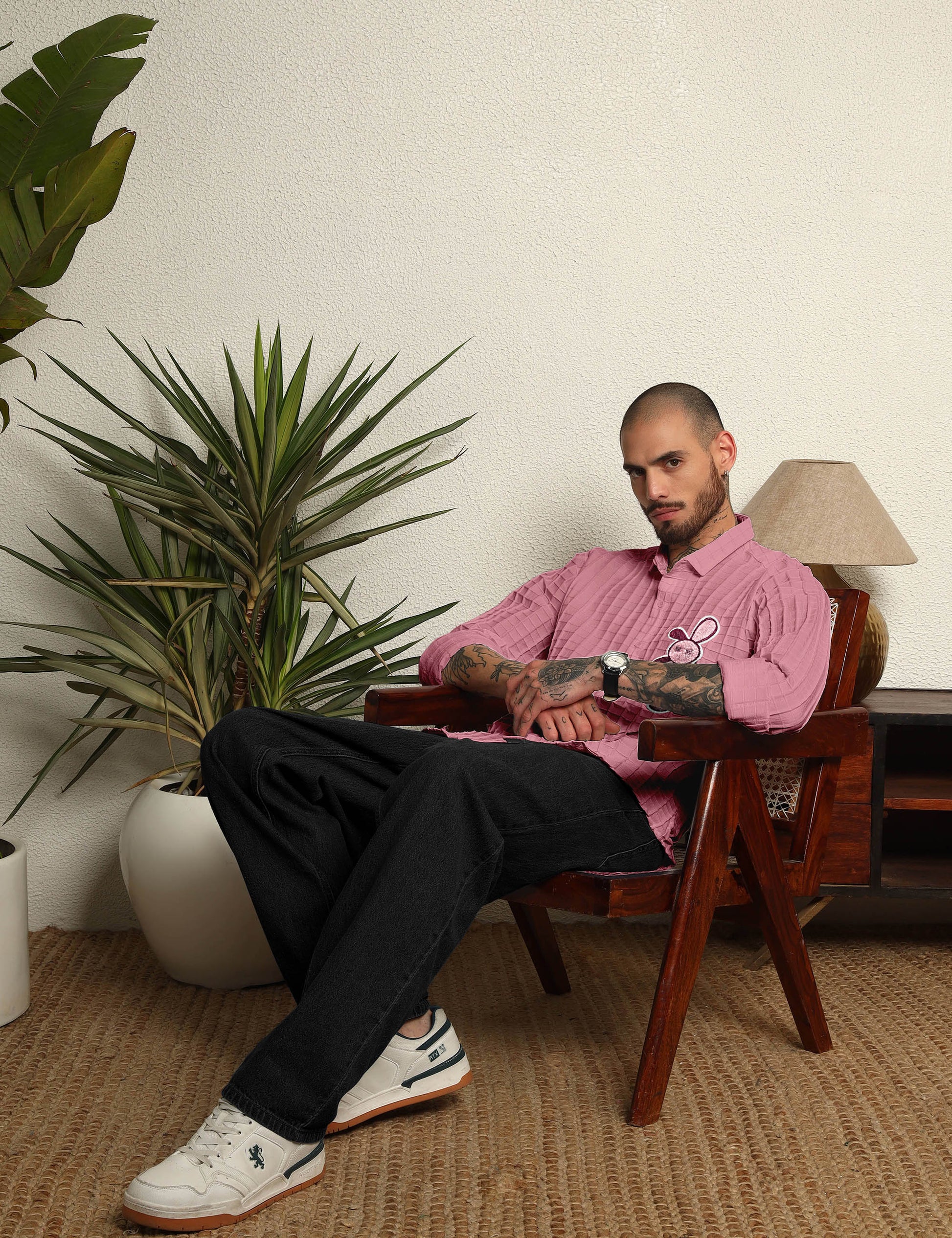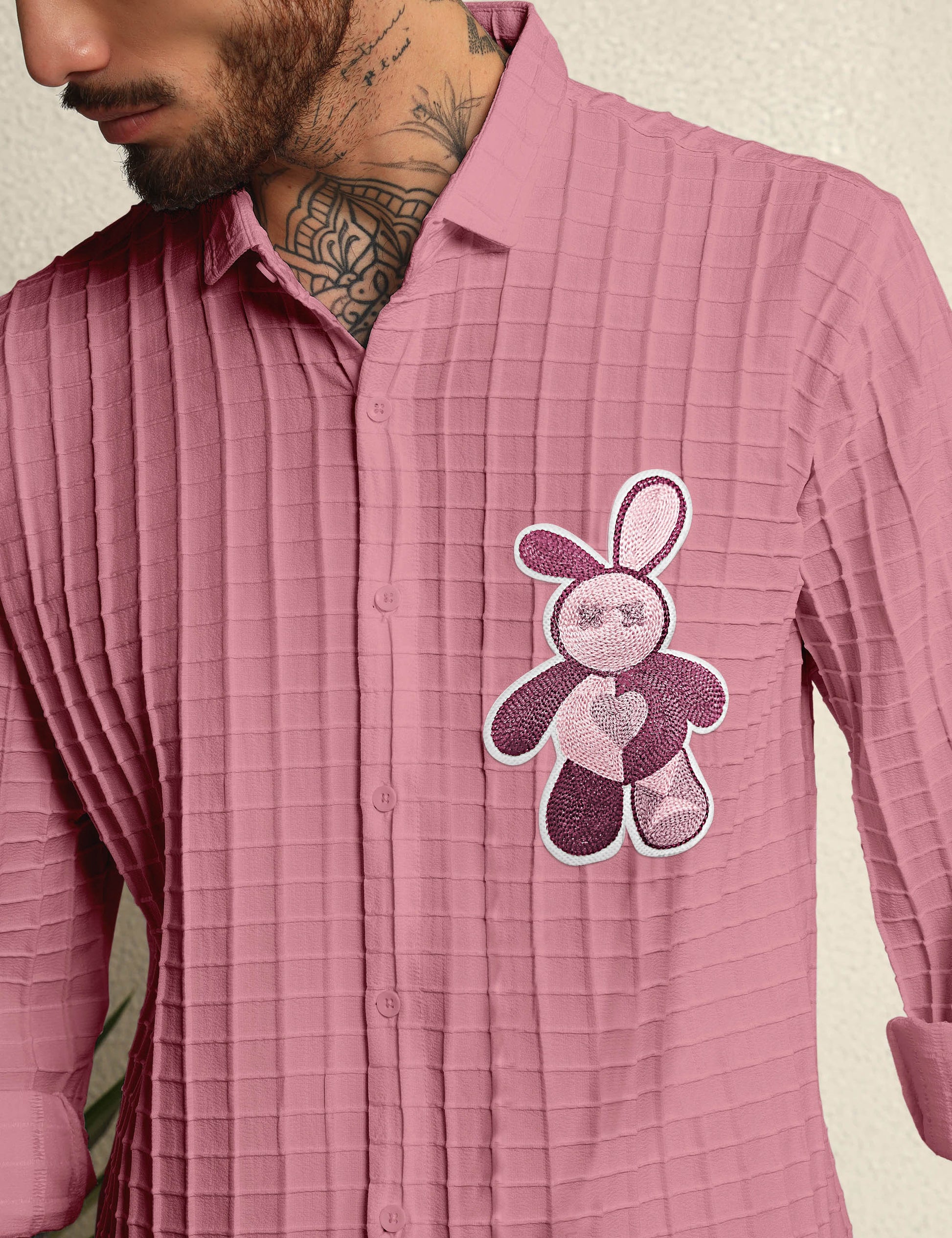 Show off your playful yet stylish side with this polycotton embroidered patch shirt. Designed with a unique textured fabric and a fun embroidered patch on the chest, this shirt blends comfort with standout style. Perfect for casual outings, parties, or streetwear looks, it adds a quirky twist to your wardrobe essentials.