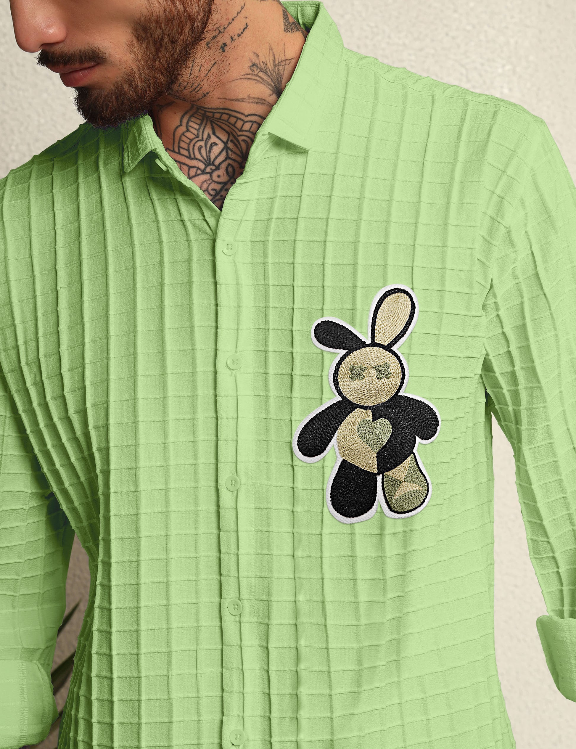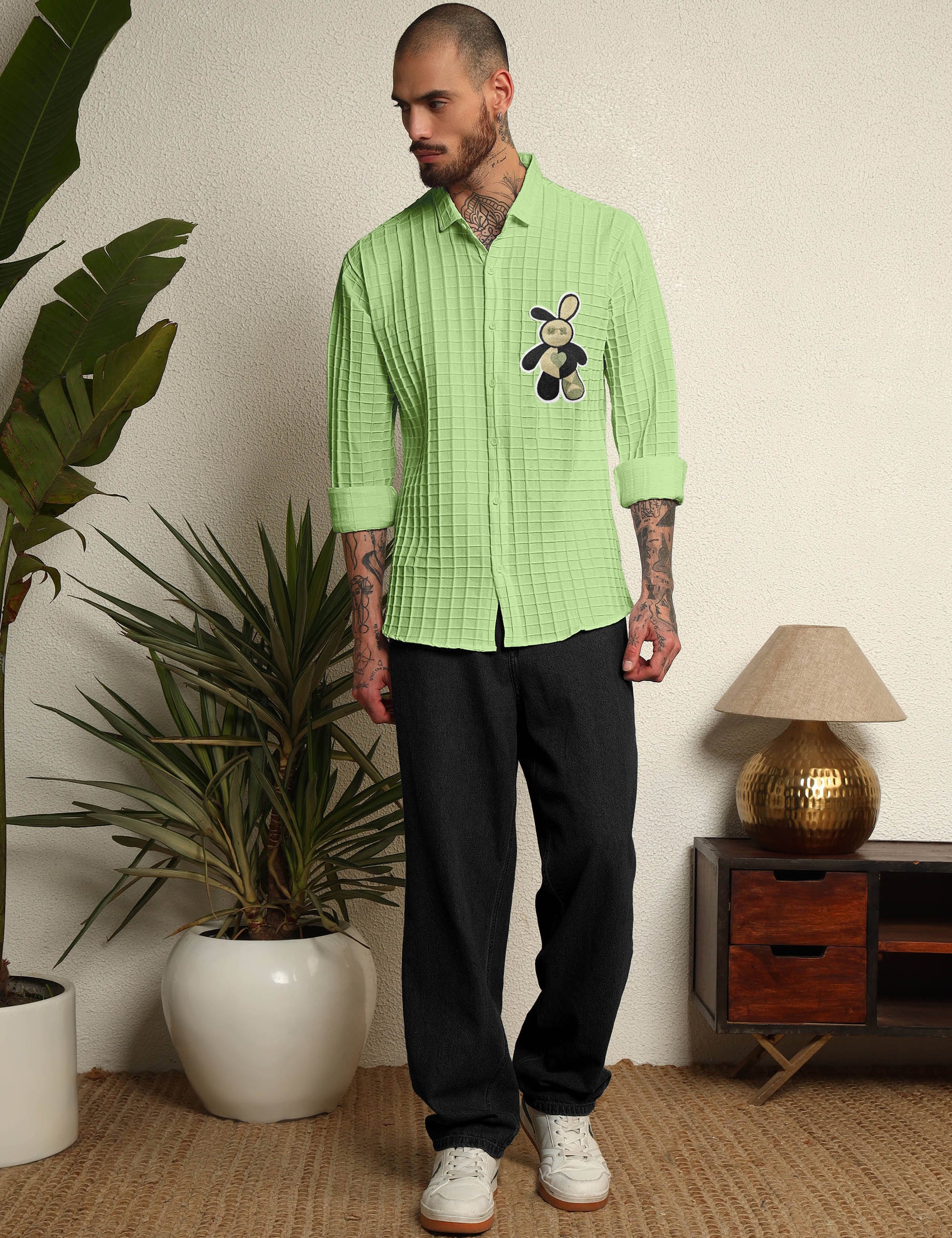 Show off your playful yet stylish side with this polycotton embroidered patch shirt. Designed with a unique textured fabric and a fun embroidered patch on the chest, this shirt blends comfort with standout style. Perfect for casual outings, parties, or streetwear looks, it adds a quirky twist to your wardrobe essentials.