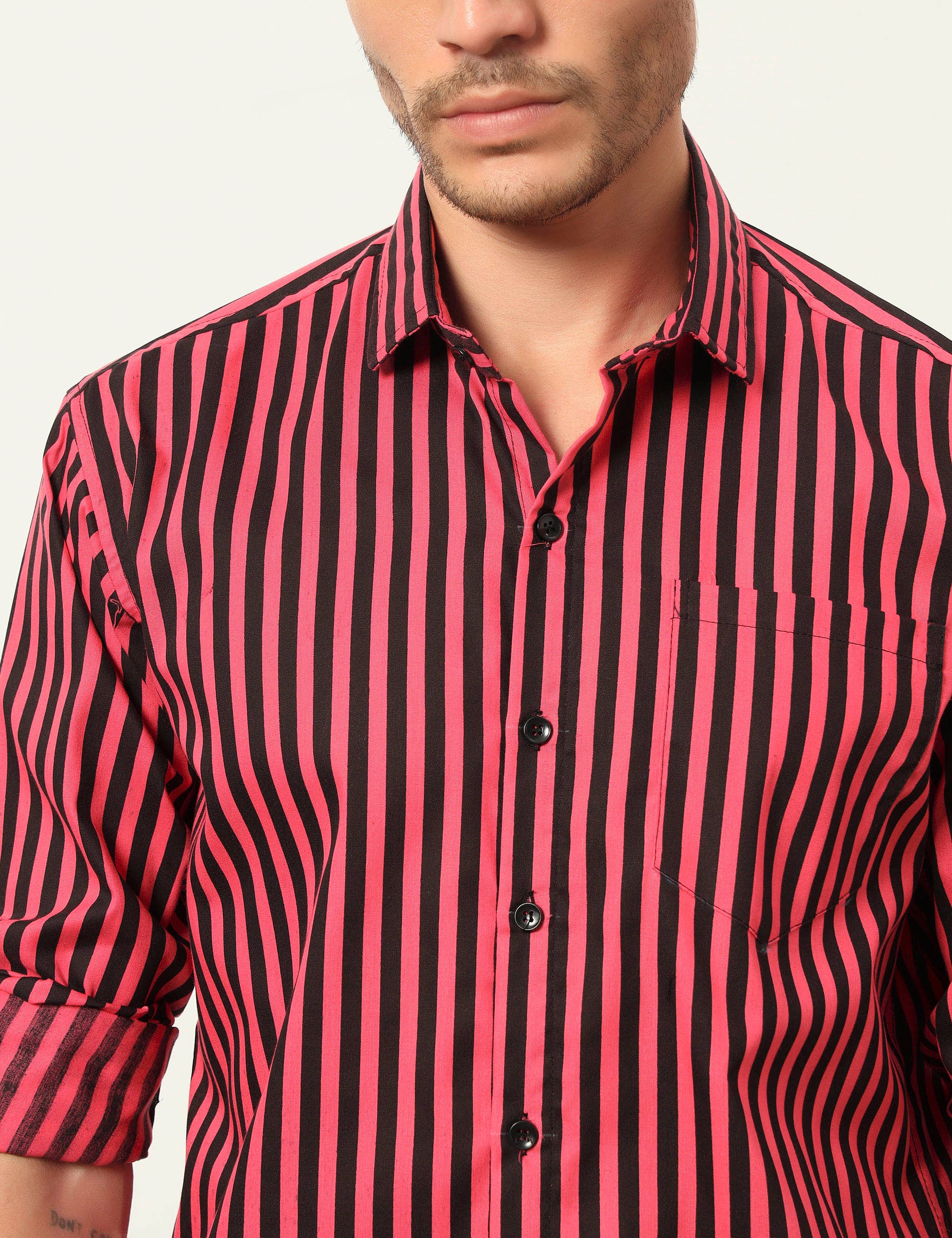 Inferno Stripes Casual Pink Cotton Blend Shirt