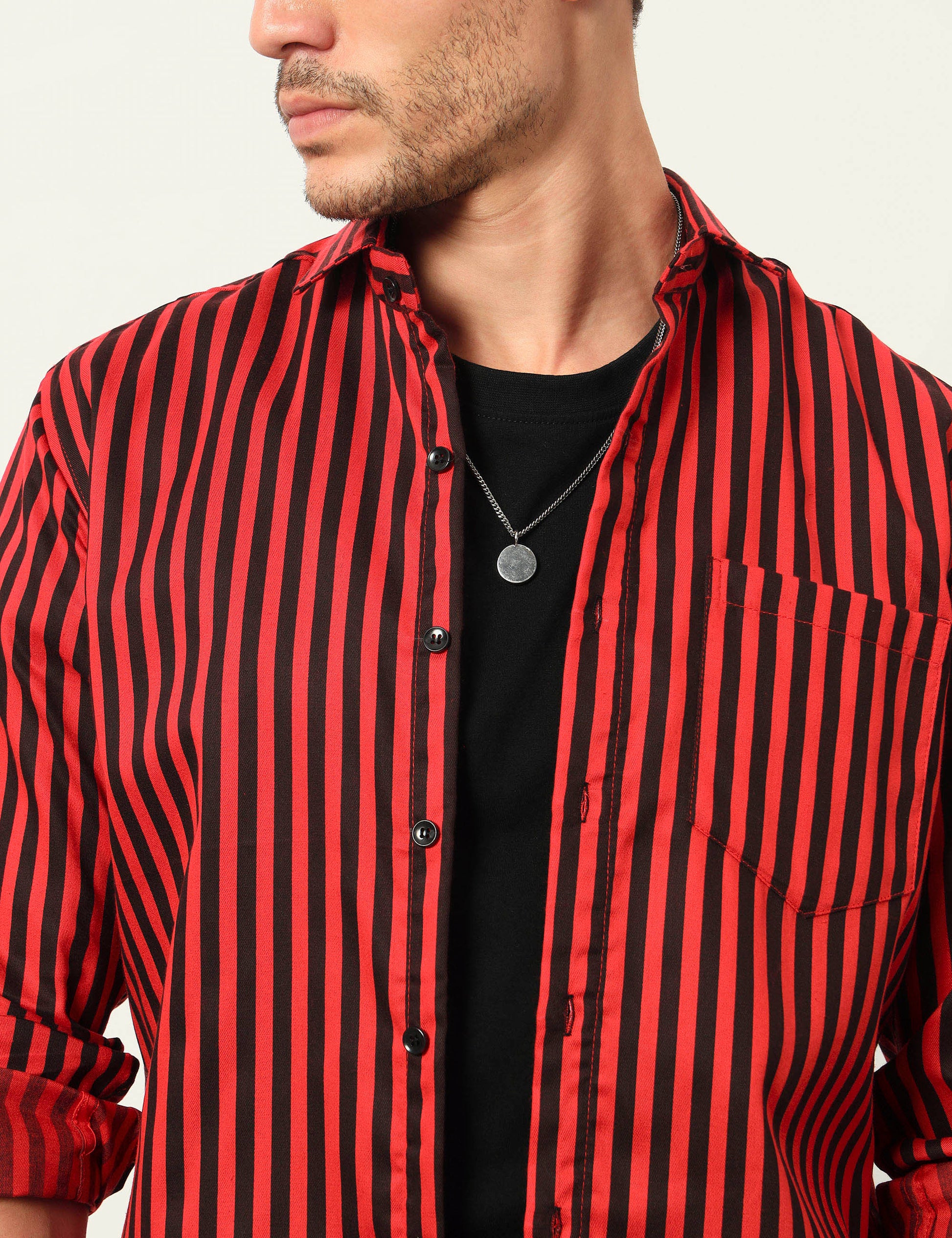 Step up your style with this cotton blend striped shirt, designed to keep you comfortable while making a bold statement. Featuring vertical stripes, a button-down front, and a classic collared neckline, this shirt is perfect for casual outings, parties, or weekend wear. Pair it with jeans or chinos for a sharp, trendy look.