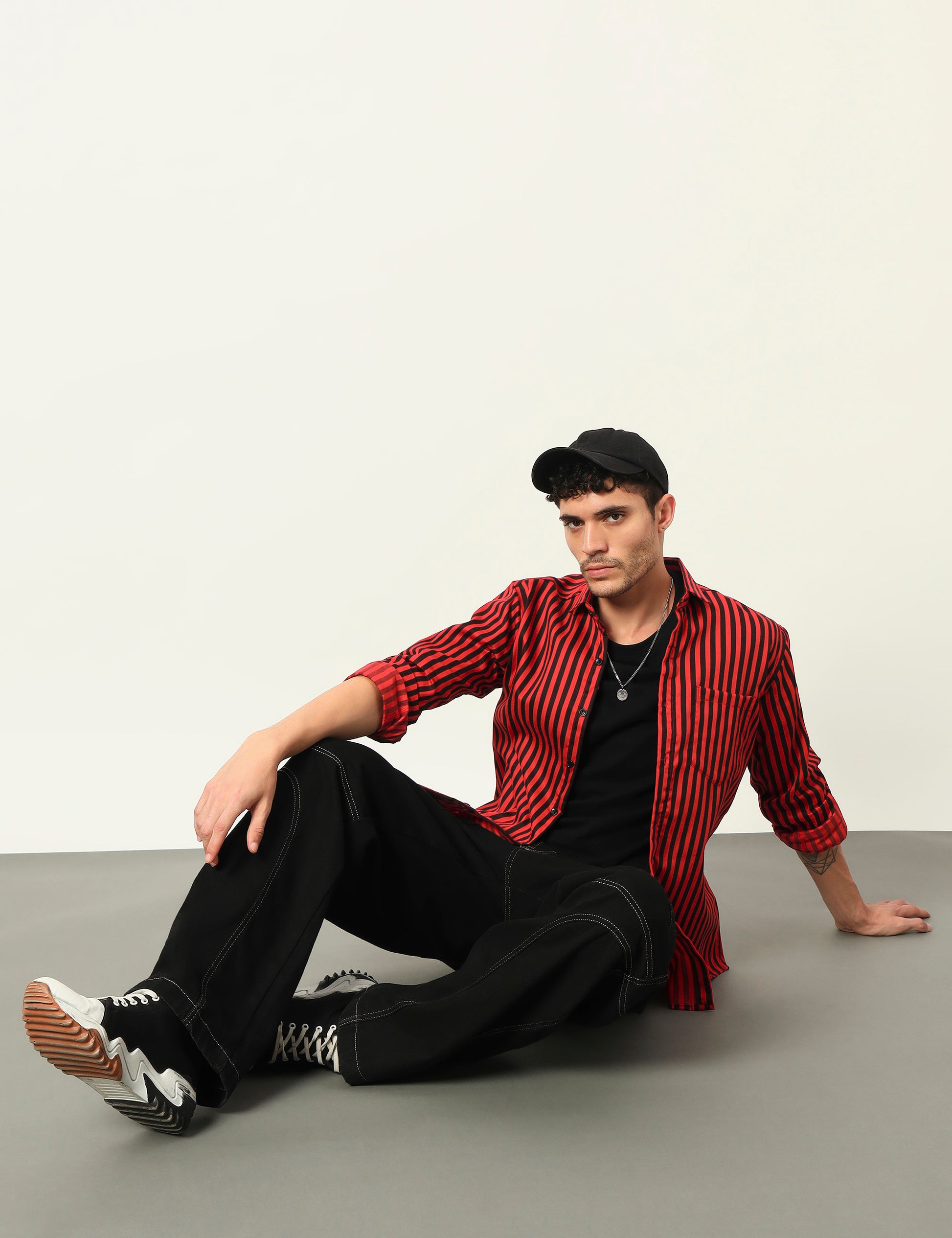 Inferno Stripes Casual Red Cotton Blend Shirt