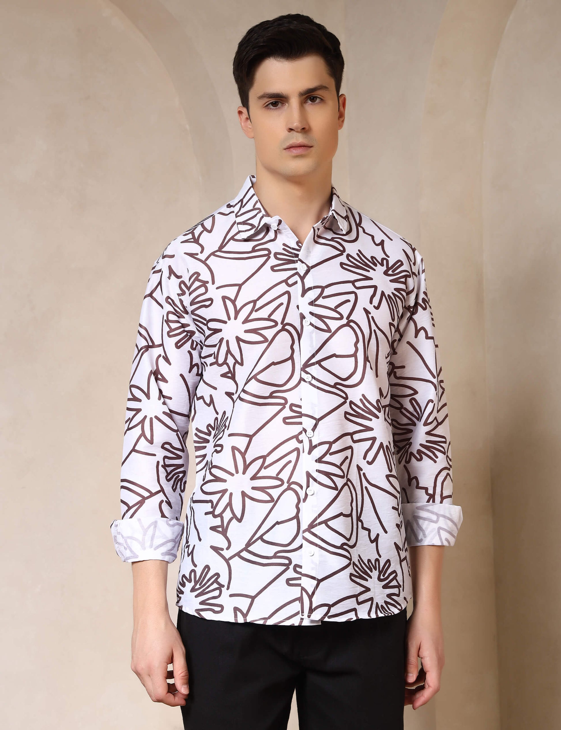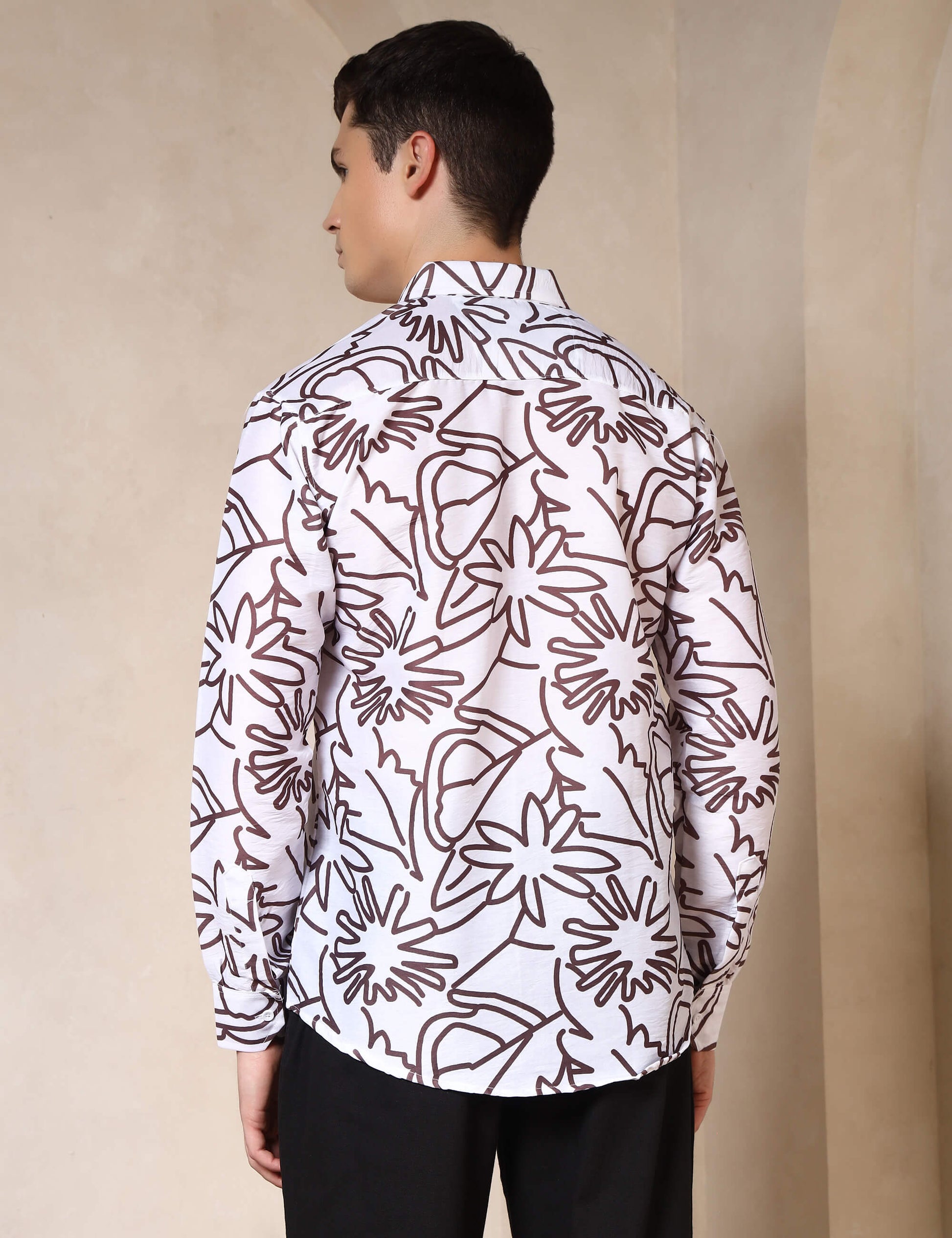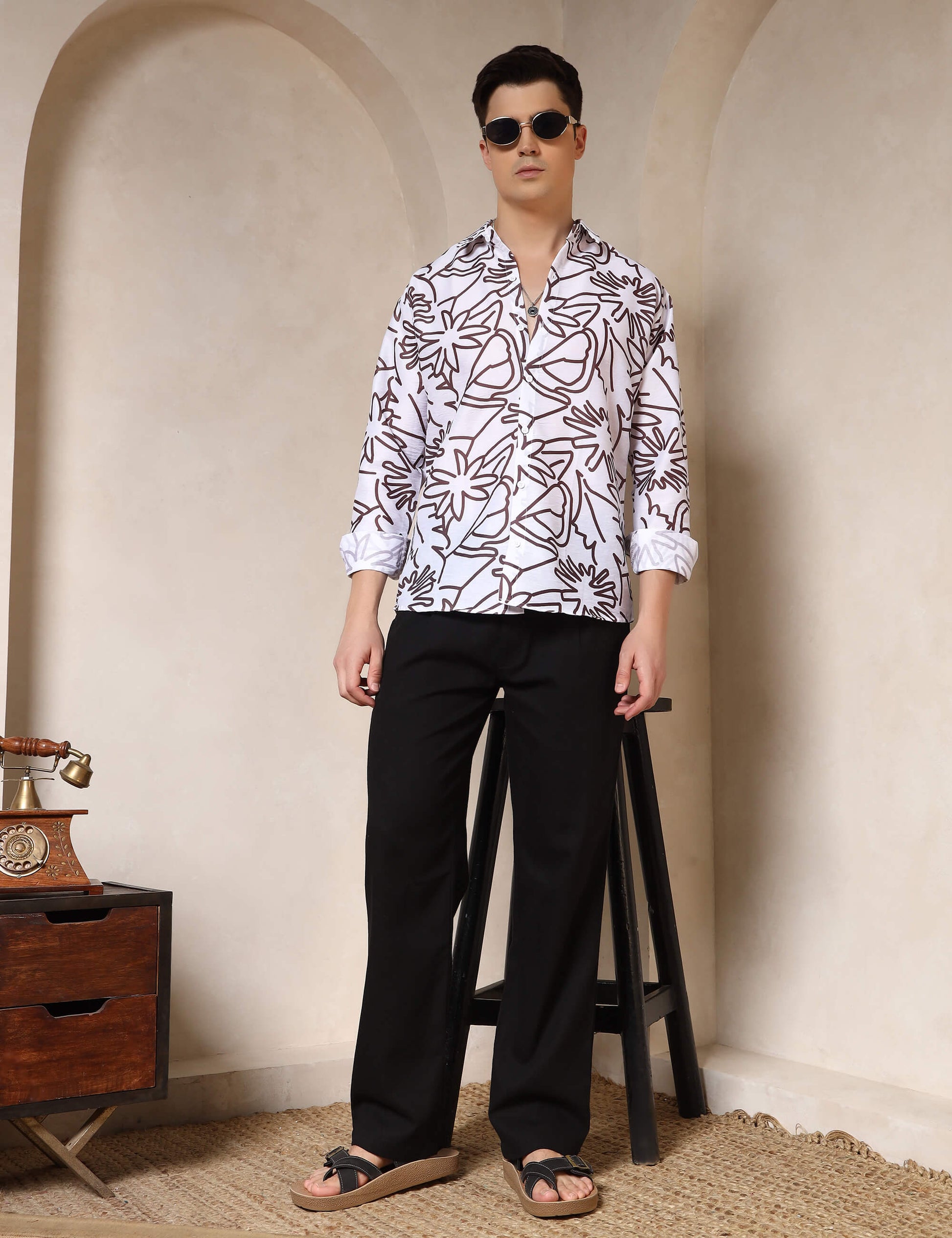 Elevate your casual look with this minimal floral line art shirt, crafted from a soft cotton blend for all-day comfort. The clean white base with bold brown outlines adds a modern artistic edge to your everyday style.