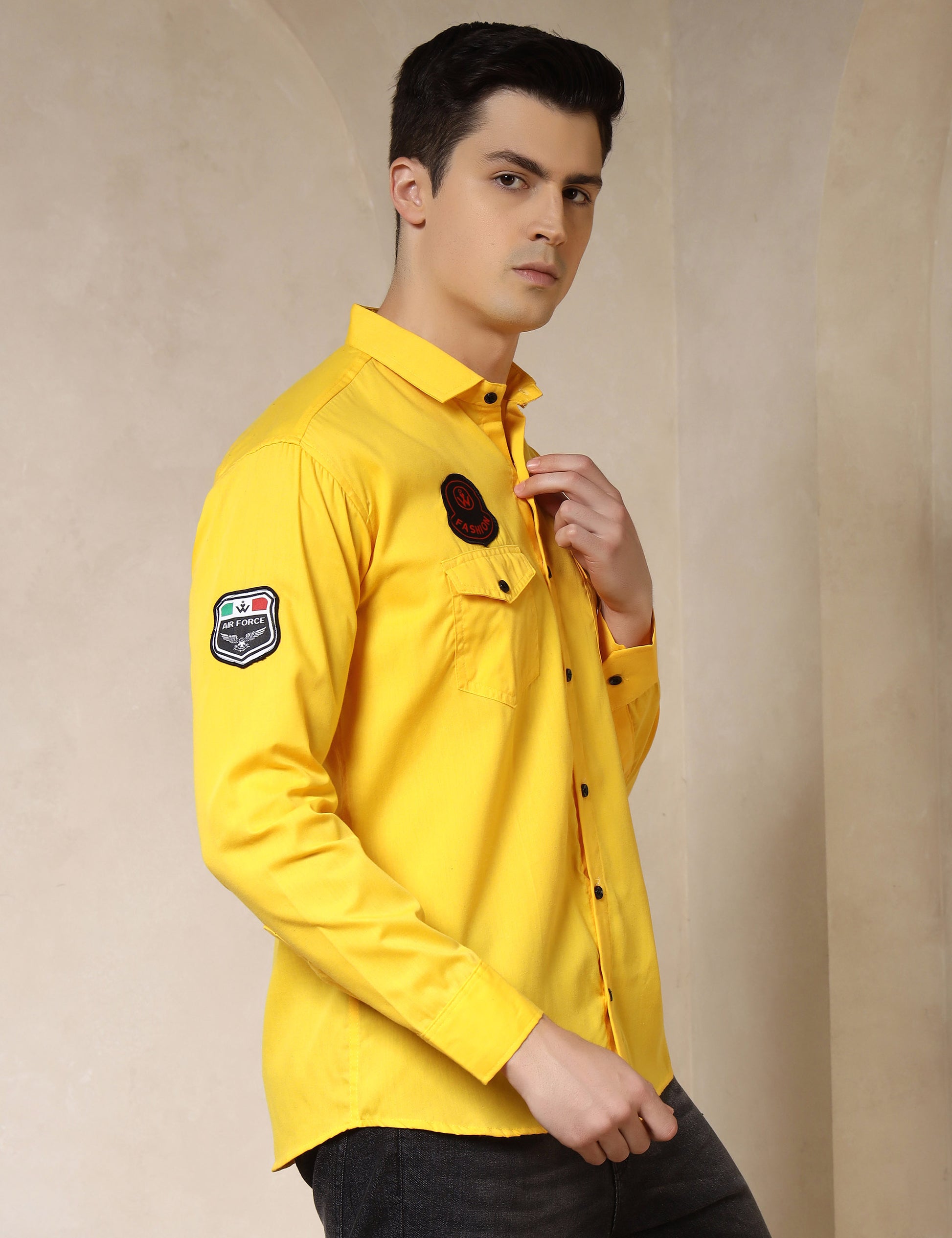 Urban Style Embroidery Patch Yellow Cotton Blend Shirt